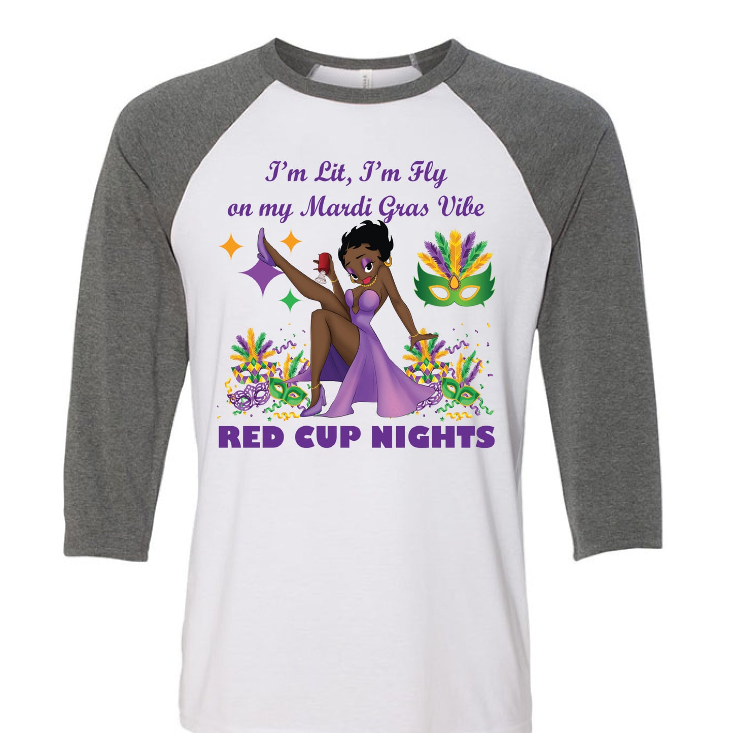 Betty Boop I'm Lit, I'm Fly` Bella + Canvas 3200 Unisex 3/4-Sleeve Baseball T-Shirt