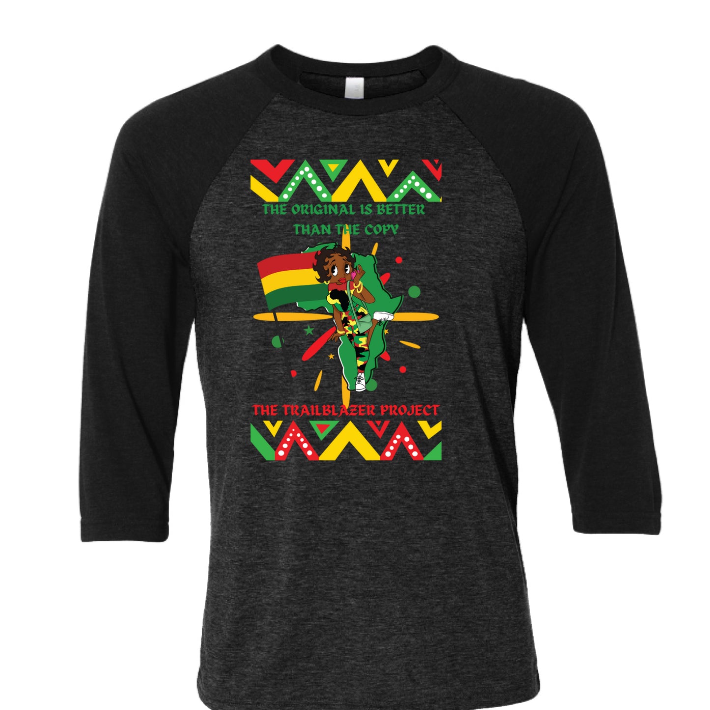 Betty Boop Patriotic Bella + Canvas 3200 Unisex 3/4-Sleeve Baseball T-Shirt