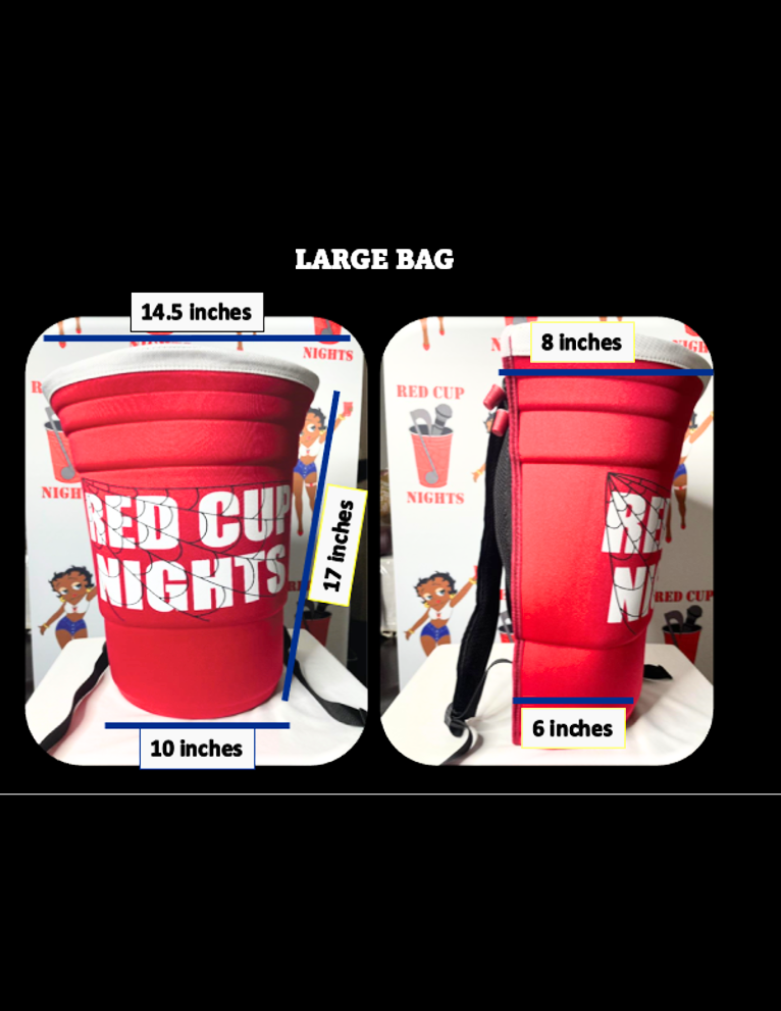 Get ready to raise the bar on fun and style with our one-of-a-kind backpack, uniquely designed to mirror the iconic Red Cup! Perfect for party-goers and trendsetters alike, our bags come in two convenient sizes: 'Party Starter' Small and 'Life of the Party' Large. But here's the kicker – the magic happens at the back! That's right, these backpacks open exclusively from behind, ensuring your valuables stay secure while you're out having a blast.